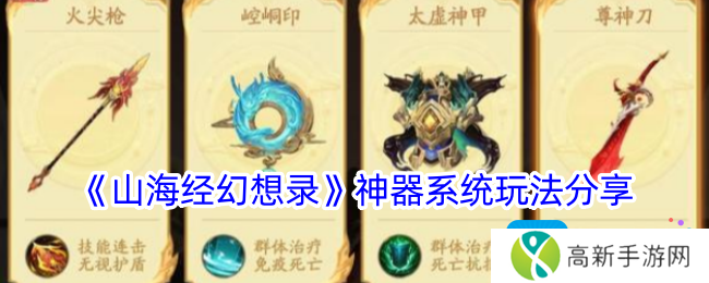 山海经幻想录神器怎么选?神器系统是一个极其复杂且充满策略性的玩法。神器根据功能不同,大致可以分为攻击类、防御类和辅助类三大类。每种神器都拥有独特的技能和属性加成,能够为异兽提供强大的属性提升和技能效果