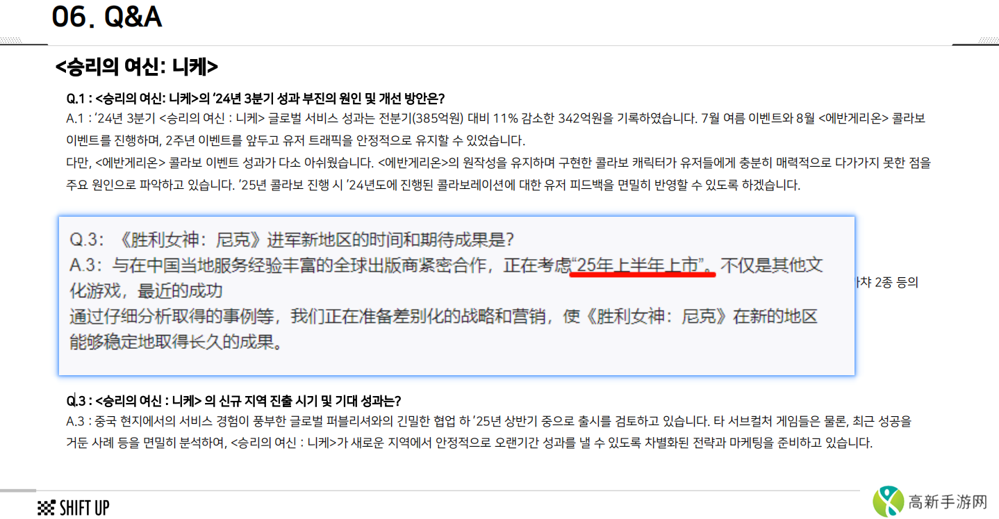 近日,Shift Up公司正式公布其第三季度财报,并在随后的Q&A环节中透露了一个消息——旗下热门第三人称射击游戏《胜利女神:新的希望-NIKKE》预计将于2025年上半年正式推出国服版本!据悉,Sh