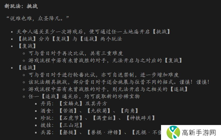 《黑神话:悟空》发布最新公告,将更新「Boss 挑战模式」、「行旅图」功能和全新披挂「彩金套装」等!新内容现已上线Epic平台,其它平台亦将陆续更新。以下是本次更新的主要内容以及具体内容,请点击大图查