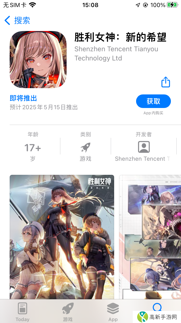 腾讯即将发行的新游戏《胜利女神:新的希望》或将于5月15日正式登陆App Store。这款备受期待的美少女射击游戏自1月9日开启预约以来,便吸引了大量玩家的期待。近期苹果App Store上显示了这一