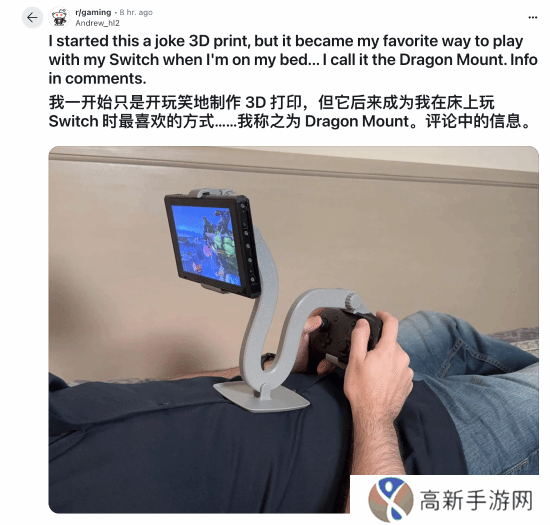 3D打印已经成为一项越来越普及的技术,人们会用3D打印机根据自己的需求来定制一些小物件,有些能极大提升便利性,解决生活中的痛点。今日,一位玩家晒出了自己的Switch“懒人支架”,可以在平躺时,以一