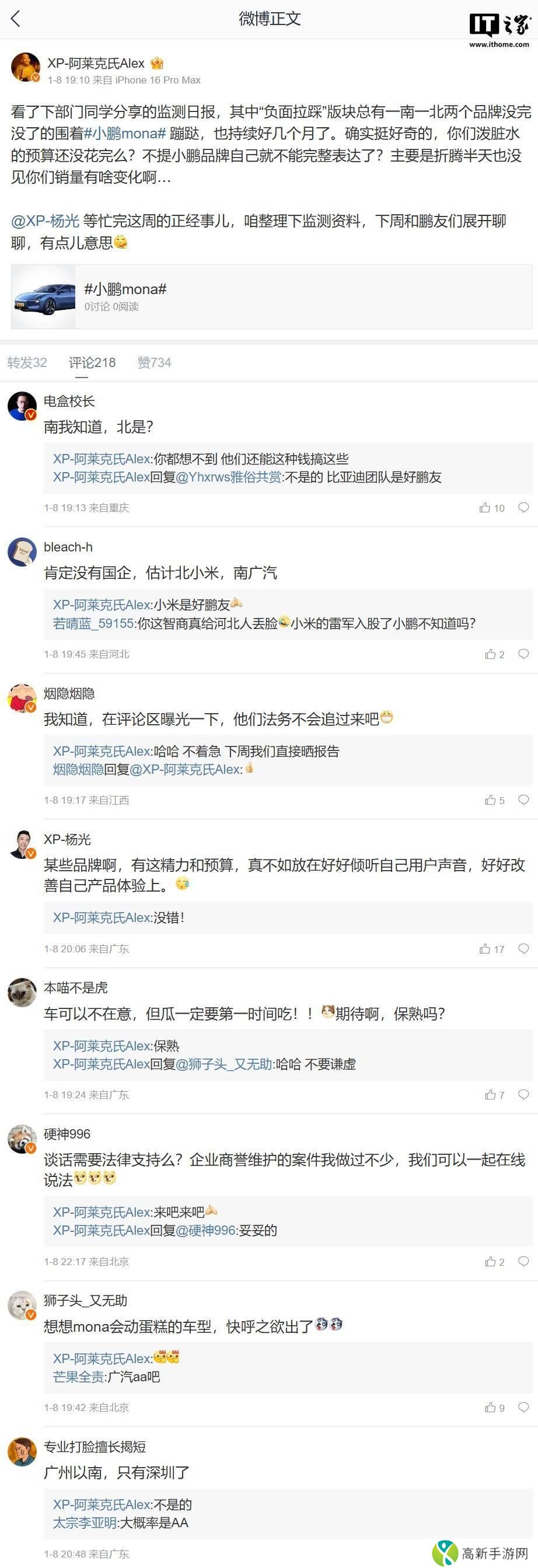 小鹏高管喊话:哪两个品牌总围着MONA蹦跶?销量却没动静?