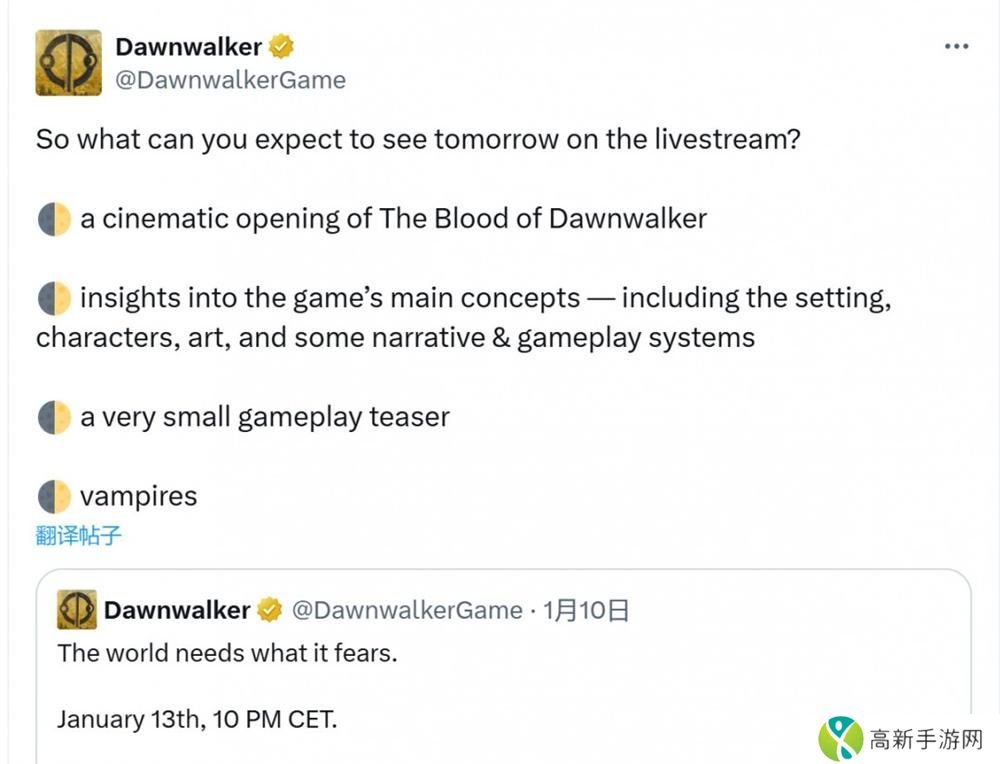 《The Blood of Dawnwalker》将于1月14日 通过直播正式公开