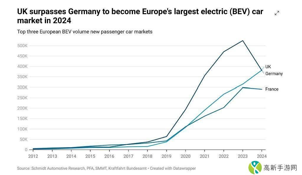 英国电动汽车市场崛起,2024年注册量超德国成欧洲第一