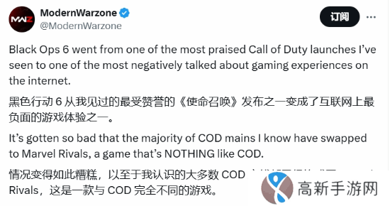 近日,外网拥有近百万粉丝的博主@ModernWarzone发文指出,《使命召唤》系列新作的口碑经历了戏剧性的转变,从最初备受赞誉的首发迅速沦为互联网上负面评价最多的游戏之一。@ModernWarzo