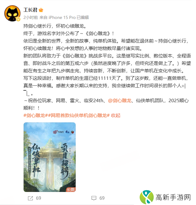 网易雷火从良做单机?古剑教父工长君新作《剑心雕龙》官宣