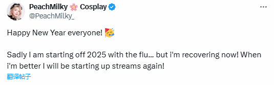 今日,我们的老朋友——《生化危机4:重制版》“艾什莉”的体模@PeachMilky发文送上迟来的新年祝福。她本人表示,刚到2025年就很不走运得了流感,不过目前正在康复中。她本人表示