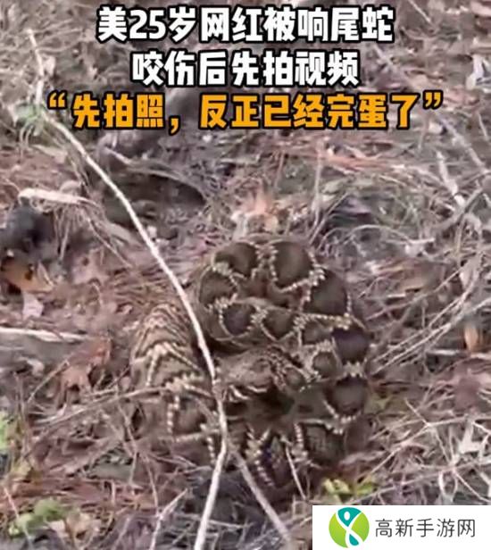 日前,美国佛罗里达州25岁网红大卫·汉普利特和朋友在野外拍摄时,意外被响尾蛇咬伤。但是他并没有赶紧去医院,而是开始拍摄视频,展示被咬流血的伤口。并称“我们先把这个拍下来,反正已经完蛋