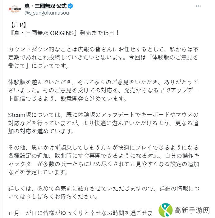 《真三国无双:起源》Steam体验版已支持键鼠操作 更多优化在路上