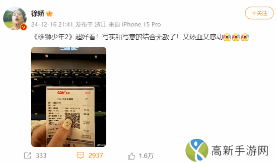 近日,演员徐娇在社交媒体上分享自己去影院看了《雄狮少年2》,并表示“超好看!写实和写意的结合无敌了!又热血又感动!”该条微博的评论区下方有网友询问:“眯眯眼不?”徐娇则回复:“满眼都