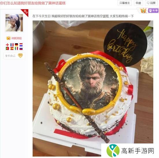 今日贴吧网友油腻湿姐晒出了自己的生日蛋糕。与众不同的是,他的蛋糕是《黑神话:悟空》主题,从照片来看制作极为精致,而且颇具创意。蛋糕正中间是天命人的画像,旁边围着一圈头戴的紧箍,还有一根金箍棒。得到许