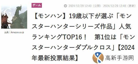 卡普空旗下的《怪物猎人》已经推出了许多部,那么对于年轻玩家来说,哪部作品最受欢迎呢?近日有日媒邀请19岁以下玩家参与评选系列最受欢迎作品,《怪物猎人XX》力压多部新作登顶。TOP5:1、《怪物猎人X