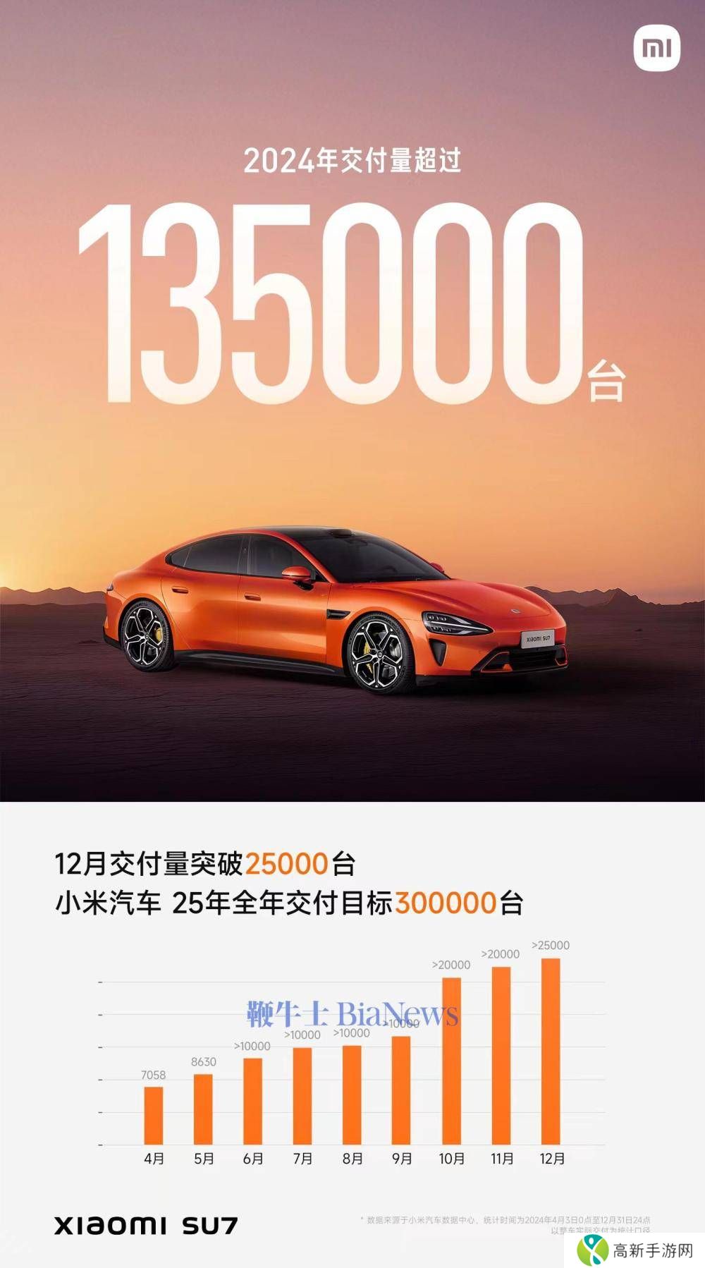 小米汽车2024战绩揭晓:年交付破13 5万,2025目标直指30万辆