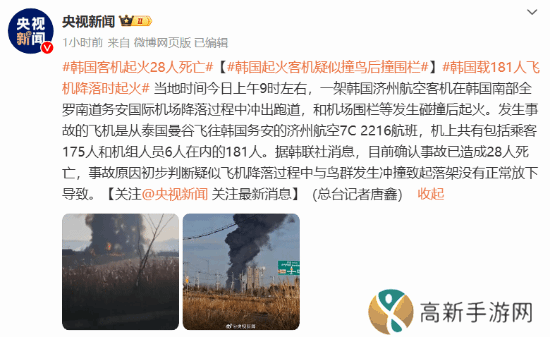 此前我们曾报道,韩国当地时间12月29日9时7分左右,一架正在着陆的飞机在韩国全罗南道的务安国际机场偏离跑道,撞上了围栏外墙,随后客机起火。本次事故造成机上179人遇难,仅有两名乘务