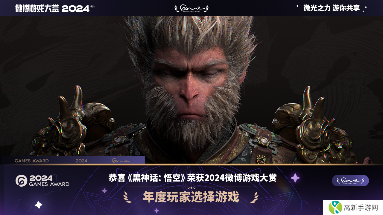 《黑神话:悟空》获2024微博游戏大赏“年度玩家选择游戏”大奖