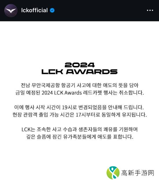 今日,一架韩国客机降落过程中冲出跑道,和机场围栏等发生碰撞后起火。经历此次事故的共计181人,179人死亡,仅有乘务员2人生还。LCK官宣紧急发文,为了悼念今天出现的飞机失事事故,原定于今天举行的L