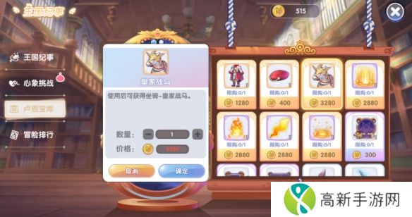 完成王国纪事-心象挑战获得纪念币,可在卢恩宝库中,用纪念币兑换坐骑-皇家战马。
