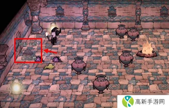 2.拿出制作好的火把点燃地上的火药,然后远离当前位置,靠得太近可能会受伤。