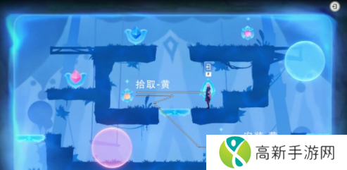 位置:传送幽思闪念旋步舞活动,按图中指引路线走,需通过树干洞口,前往聚流映灯1。