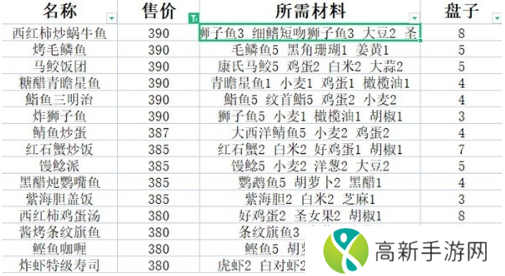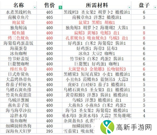 潜水员戴夫高售价料理食谱有哪些?在游戏中,料理食谱也是相当重要的,很多的玩家对于食材的选不是特别的清楚,那么下面,小编就为各位带来潜水员戴夫高售价料理食谱大全,一起来看看吧。
