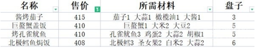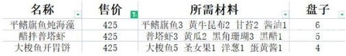 1.全游戏价格最高的425档,三道,平鳍旗鱼炖海藻,醋拌普塔虾,大梭鱼饼。