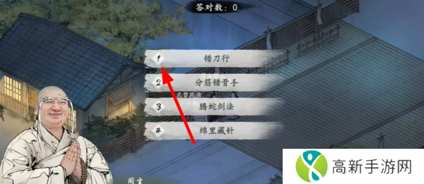 2、抵达目的地后,继续和和尚交流,正确解答四道题目。