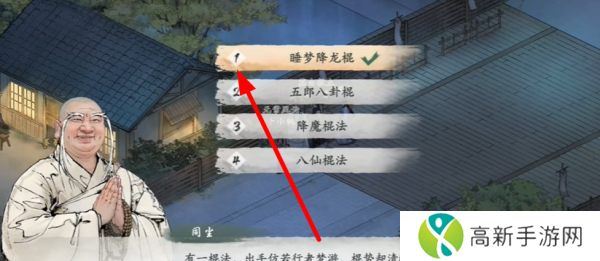 1、跟随任务,来到下图所示位置和和尚对话,然后跟从他。