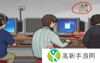 2.网吧场景:先点击兜里的存折后才能点击墙上的报纸和桌上的泡面。