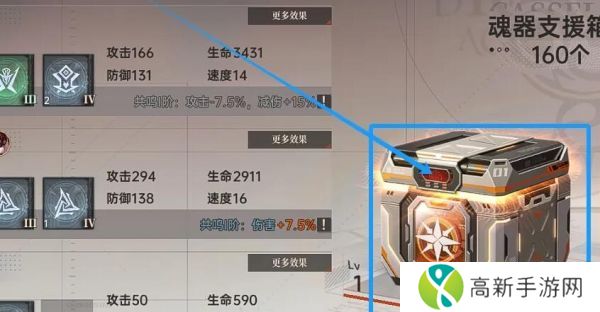 4、最后打开资源箱,让其和新获得的魂器融合,就能获得加成属性