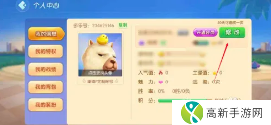 进入到个人中心界面中,找到修改按钮,点击进去。