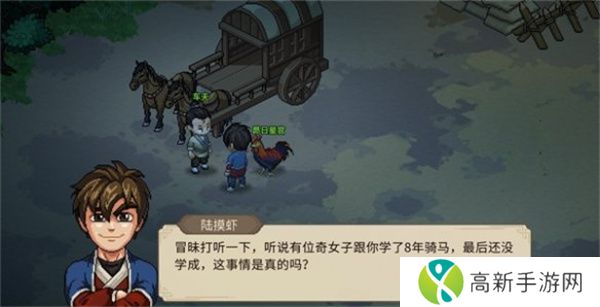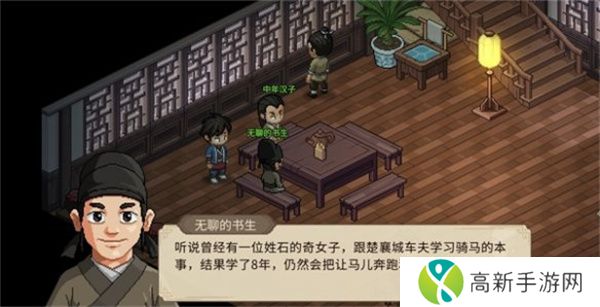 2、上前和npc对话,了解关于石姓奇女子的传闻。