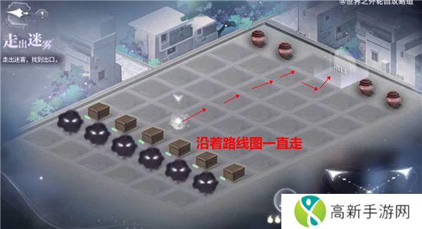 第一关,看下面的路线图,用箭头标注出来了,一步步的按照箭头标注的格子走就行了,梦魇是无法追上来的。