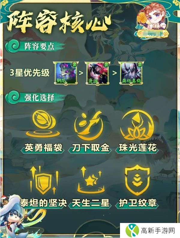 2.阵容羁绊:4护卫3墨之影2幽魂2斗士2永恒之森2狙神