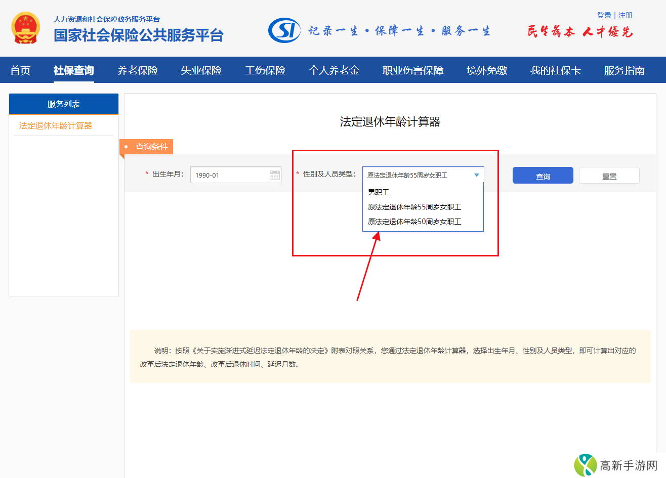 说明:通过法定退休年龄计算器,选择出生年月、性别及人员类型,即可计算出对应的改革后法定退休年龄、改革后退休时间、延迟月数。
