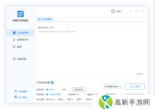 一、迅捷文字转语音软件。迅捷文字转语音是一款集文字转语音、语音,录音转文字为一体的语音文字转换器软件,专业的文字转语音播音系统可将文字通过AI朗读,变成多种语音,非常棒!