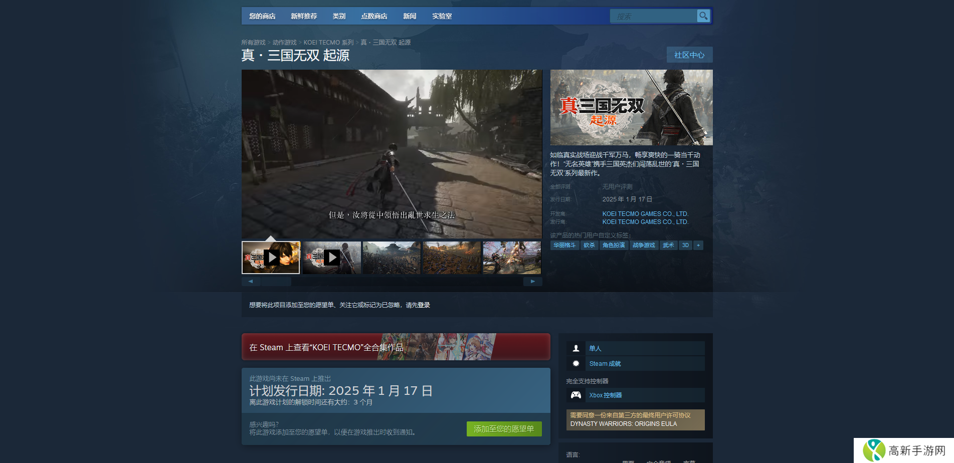 《真三国无双:起源》是光荣社开发的真三国无双系列的最新作,属于是角色扮演战争游戏,而这款游戏的官网地址就是Steam平台的购买页面和官方的一个游戏页面,进入到这个游戏的购买页面基本上就能知道所有这款游戏的信息。