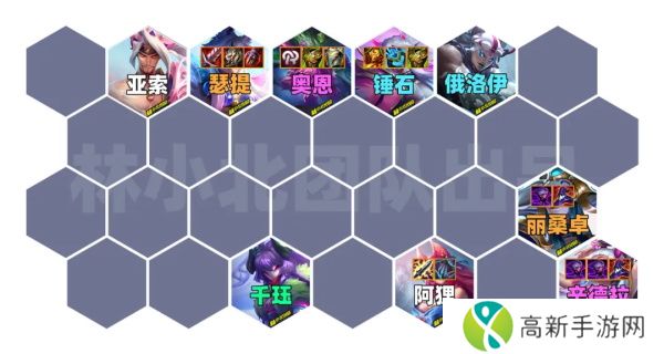 3.站位:辛德拉、丽桑卓、阿狸以及带离子、日炎的前排站同一侧,集中伤害快速让对手减员,或者让辛德拉和丽桑卓各站一边去抓对手的前排战士,以防对手的前排战士突然换位