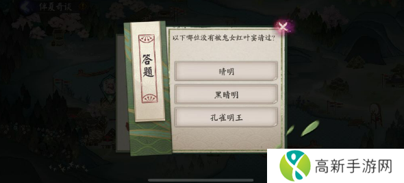 以下哪位没有被鬼女红叶宴请过?这个是最新的习题问题哦,很多的玩家也是不清楚如何去进行解答,对答案不是很清楚,小编为玩家们提供详细的解题思路,帮助你去完成问题,阴阳师6月27日习题答案解析分享,跟随小编一起去进行推理吧。