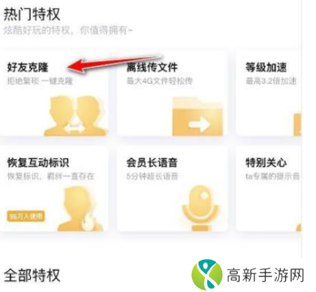 3、在特权里面找到“好友克隆”。