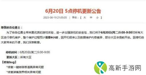 DNF:6.20官网“紧急停机公告”
