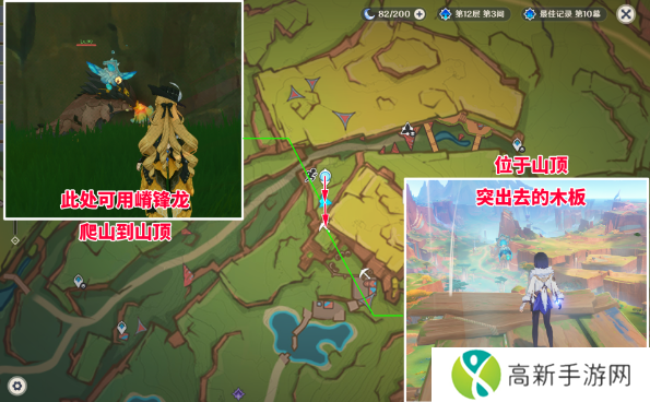 1、宝箱:位于山顶,达到后能看到一块突出去的木板;