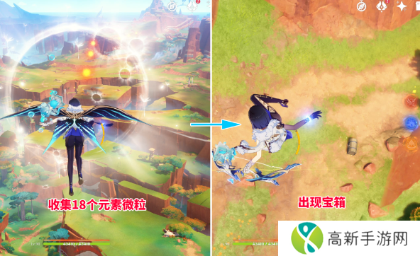 3、借助风场收集18个元素微粒,全部收集完后就会出现宝箱。
