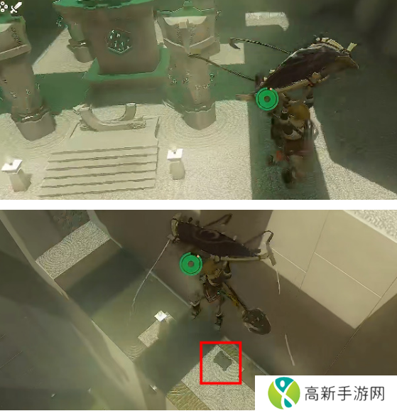 1、进入摩罗恩克神庙后我们来到下图物体位置,等待他下落的时候站上去。