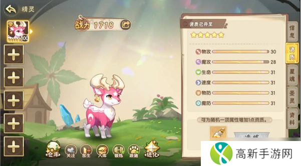 在精灵信息页,点击右侧资质,即可在资质面板内进行洗练