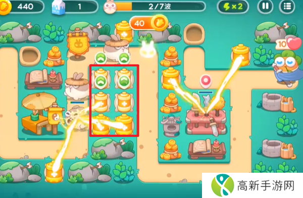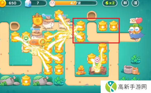 3、拆掉几个大道具之后,我们的压力就会小很多,开始布置炮塔来度过中期。