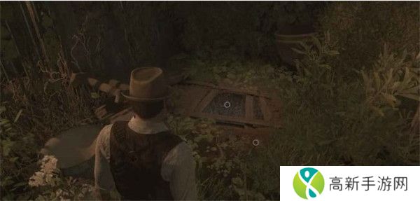 走到雕像后的井边,把水管接在花园的管子上,使水井中的水位上升,拾取桶里的碎盘子。