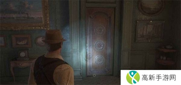 前往画廊,在钟表右侧的门上使用起居室钥匙。
