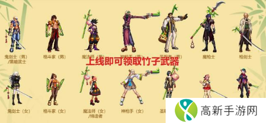 【2、竹子武器】。竹子武器装扮,每个职业设计不同,萝卜青菜各有所爱,个别职业挺好看的,比如暗夜使者、魔法师、圣职者等等。
