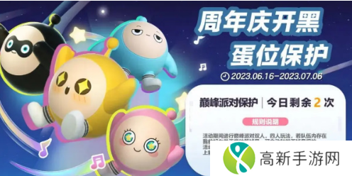 10、即日起至6月22日蛋仔们邀请蛋搭子组队参与巅峰派对双人或四人模式,可享受每日2次巅峰派对保护次数不可累计凤凰蛋以上可触发不掉分保护。