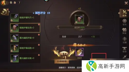最后点击追加即可,更换装备,追加等级会被继承,不会损失。